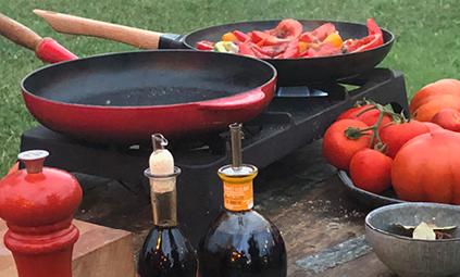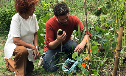 zeiden al: “Jullie komen zeker voor de melanzane?” Ze liet Wim de tuin zien, vertelde over de oude bakoven