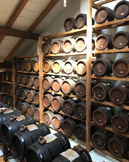 De balsamico rijpt op zolder in vaten van 6 verschillende houtsoorten. Op zolder omdat het daar zomers heel