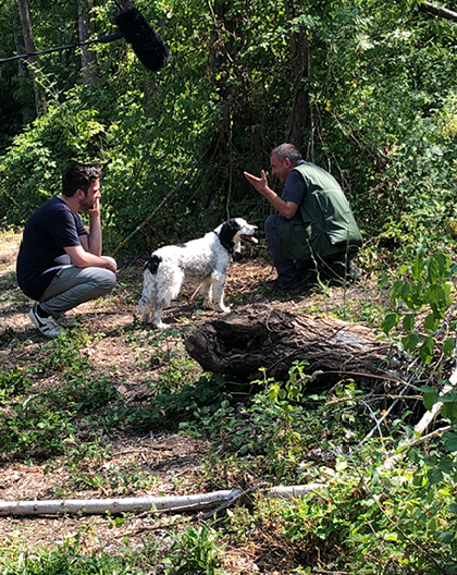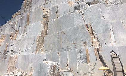 De gids nam de cameraploeg mee naar een marmergroeve om een mooie locatie uit te zoeken voor de