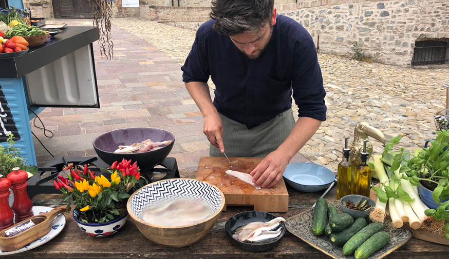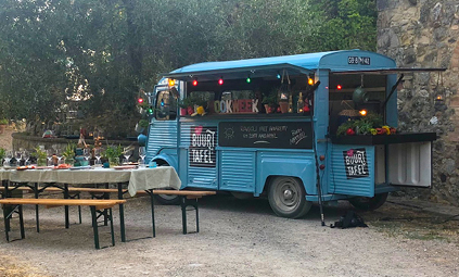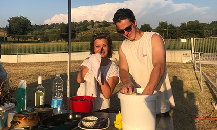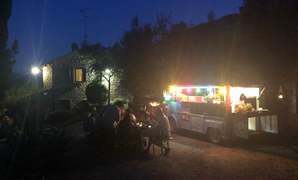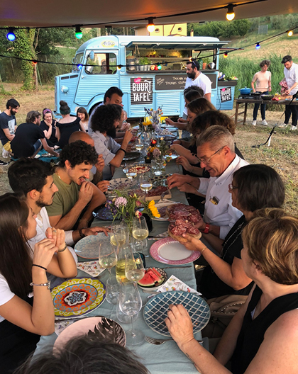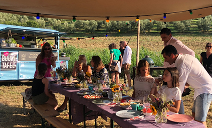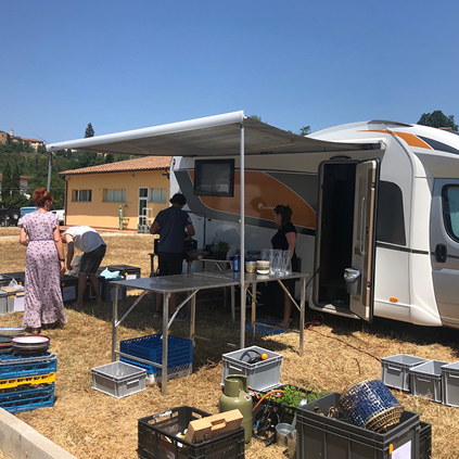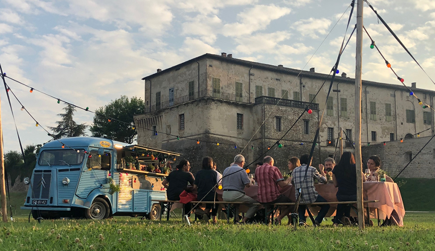 In het kleine plaatsje Sala Baganza, mochten we bij de Rocca di Sala Baganza onze foodtruck en buurttafel