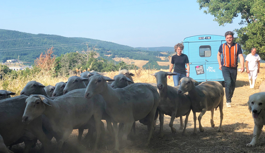 kijken. Daar stonden we dan, met de foodtruck midden tussen alle schapen en prachtige Maremmani honden.