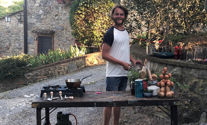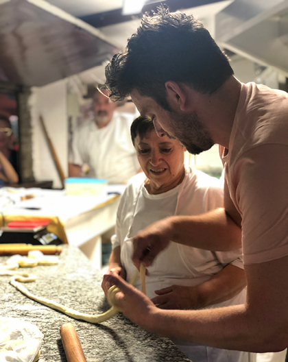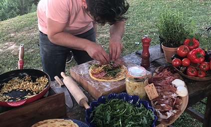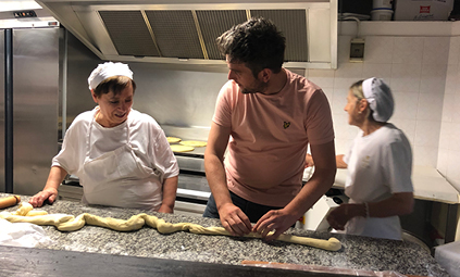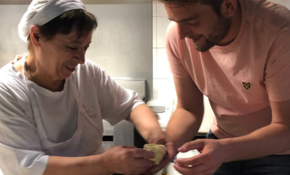 maken van z’n eigen deeg om zo crescia met rösti te maken. En het is gelukt! Eén van de Italianen aan tafel zei