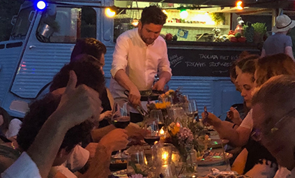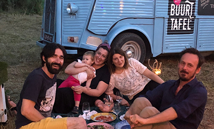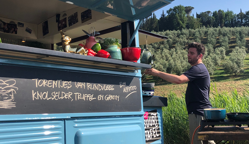 zitten. Wim sprong gelijk uit z’n foodtruck om ze te