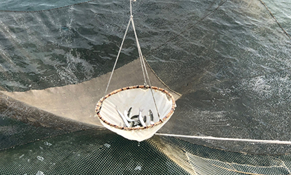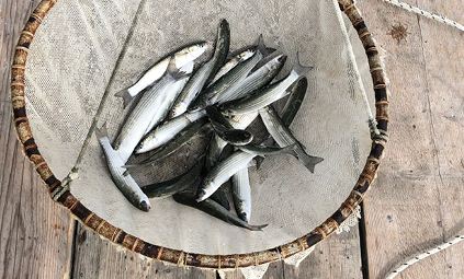 naar de vissers die hun vangst aan het binnenhalen waren. Een hele aardige visser liep met Wim mee de