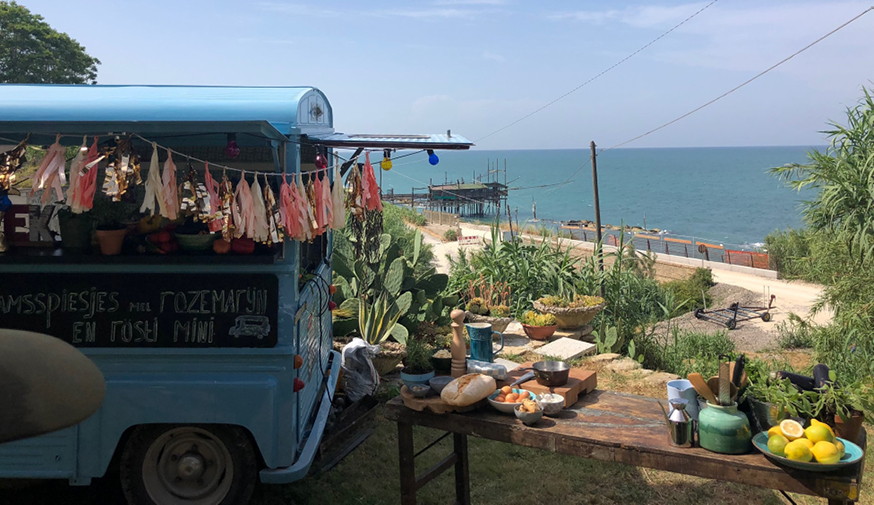 Op het strand zelf konden we de foodtruck niet opzetten, een paar honderd meter verder konden we wel staan,