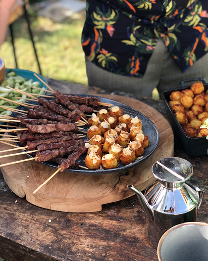 De Arrosticini wordt geroosterd op een speciale smalle BBQ, dus die kregen we mee. Op een prachtige plek