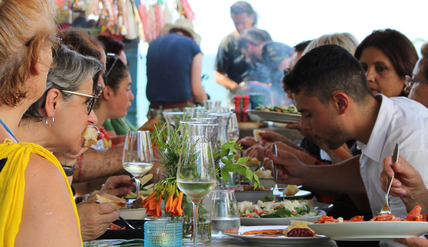 zeg! Heerlijk gegeten met z’n allen aan een lange