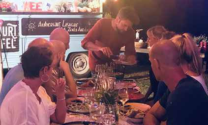 aan zee stond de buurttafel al klaar dus Wim kon gelijk aan de slag met z’n lamsvlees. Voor erbij had Wim