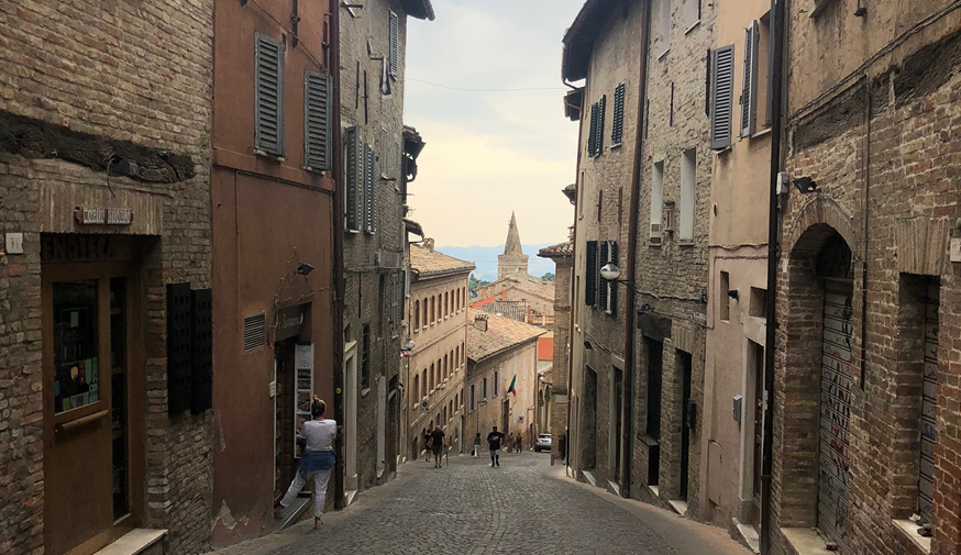 Urbino staat bekend om Crescia een soort panino/pannekoek-achtig warm broodje waar beleg tussen gaat