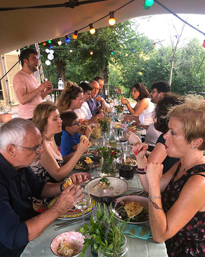 familie uit. Een geweldige Italiaanse chaos werd het met veel te weinig stoelen maar gelukkig genoeg