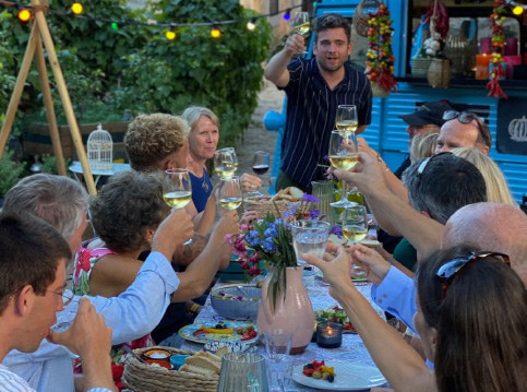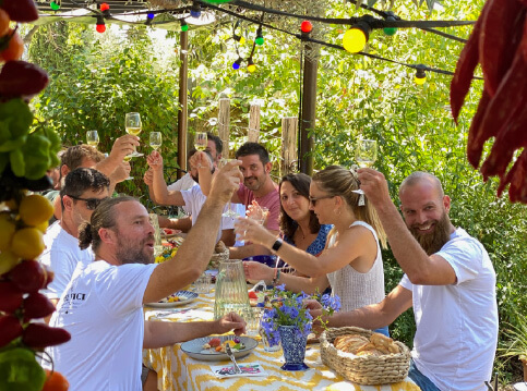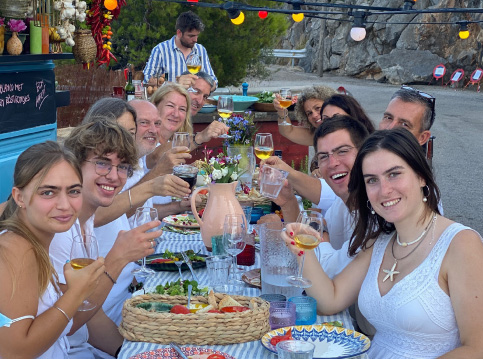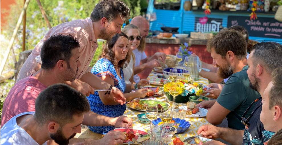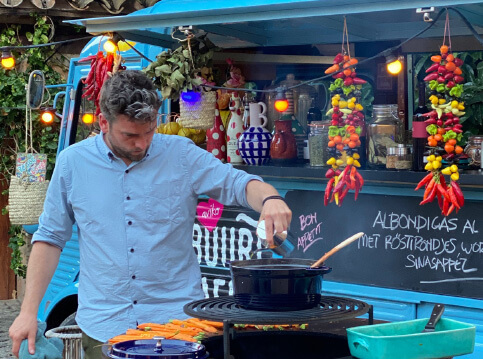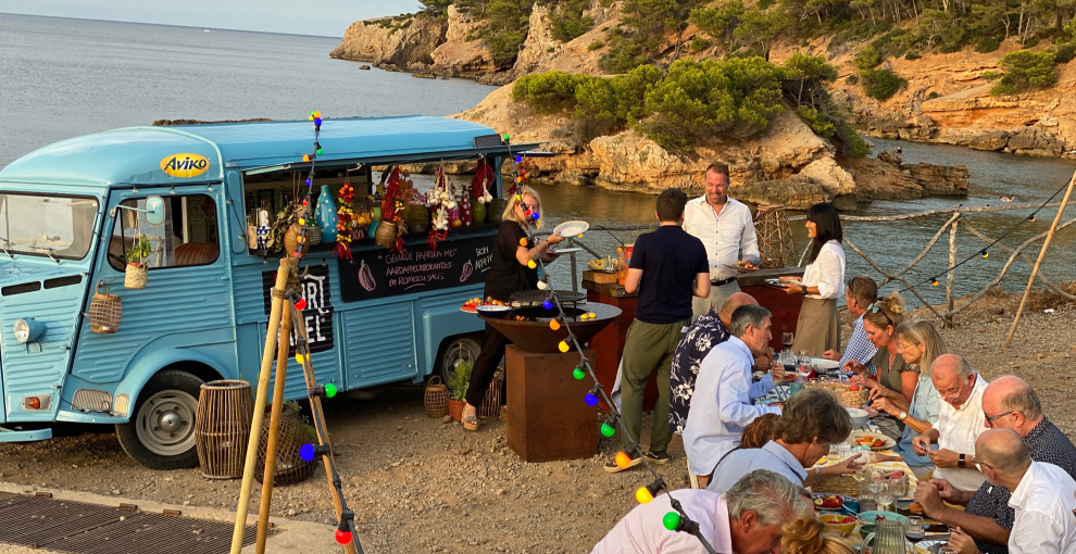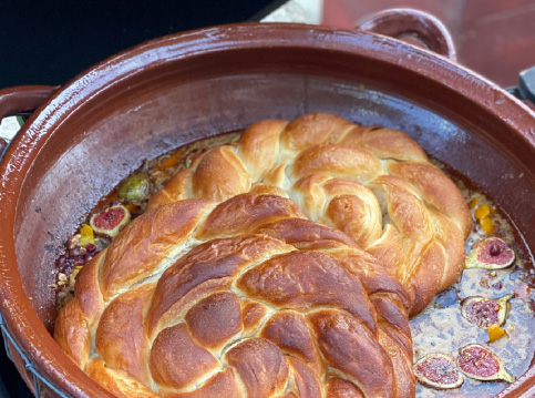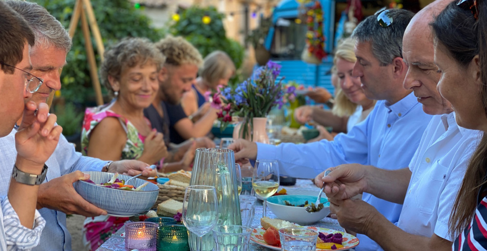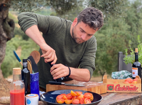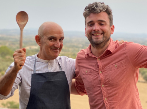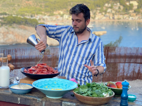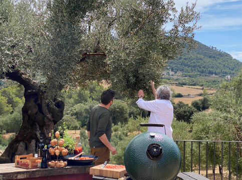 Het is of je zo een sprookje binnenloopt bij Fornet de La Soca in Palma, je blijft om je heen kijken. Uit deze piepkleine bakkerij komen de mooiste creaties. Tomeu Arbona heeft er z’n levenswerk van gemaakt om oude, authentiek Mallorcaanse recepten in ere te herstellen. Met oneindige liefde voor het eiland runnen hij en z’n vrouw Maria José deze prachtige bakkerij waar Wim ’s ochtends in alle vroegte mee mocht kijken hoe de ensaïmadas en nog veel meer heerlijkheden werden gemaakt. We mochten niet vertrekken voor we een heerlijk ontbijt hadden genoten. ’s Avonds waren we te gast bij Finca Bellveure van de familie Marques y Pons. Een prachtige locatie met een adembenemend uitzicht over het dorp Binissalem. Deze lieve mensen stelden hun finca voor ons beschikbaar. Ze maken daar ook geweldige Mallorcaanse serveerplanken, daar hebben we er natuurlijk ook gelijk een paar van meegenomen.