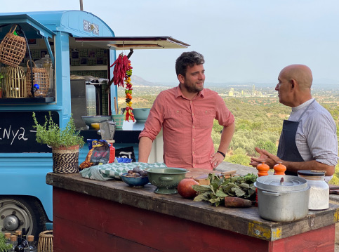 Wim gaat in deze uitzending met met Damià, hij maakt niet alleen sobrasada maar verbouwt ook z’n eigen Tap de Corti, een belangrijk ingrediënt voor het maken van sobrasada. Deze peper zorgt voor de kleur, smaak en geur van veel typisch Mallorcaanse gerechten. Wim maakt er geroosterde paprika’s met Ibérico ham, aardappelkrokantjes en romescosaus mee. Het ziet er zo lekker uit!Naar recept Alle afleveringen