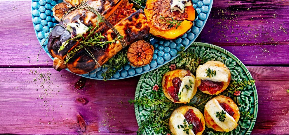 • Steel de show met deze vegetarische rollade met romige gratins, cranberrycompote, gesmolten brie en tijm.