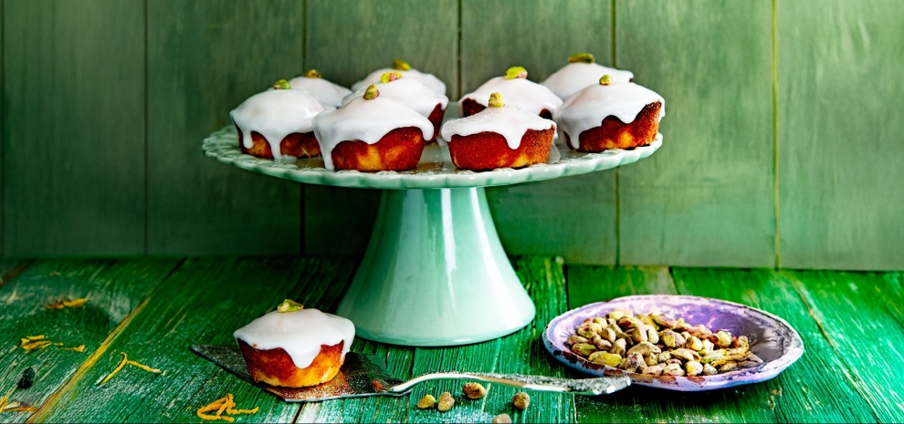 - Rösti geeft de cakejes een extra volle smaak. Met hun sinaasappel-pistachesmaak en yoghurtglazuur zijn ze super feestelijk.